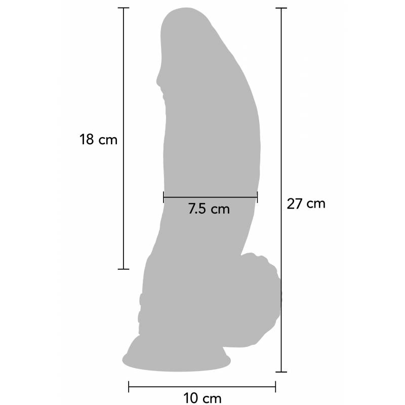 Dimensioni: Lunghezza totale 27 cm; Lunghezza penetrabile: 18 cm; Diametro max: 7,5 cm.